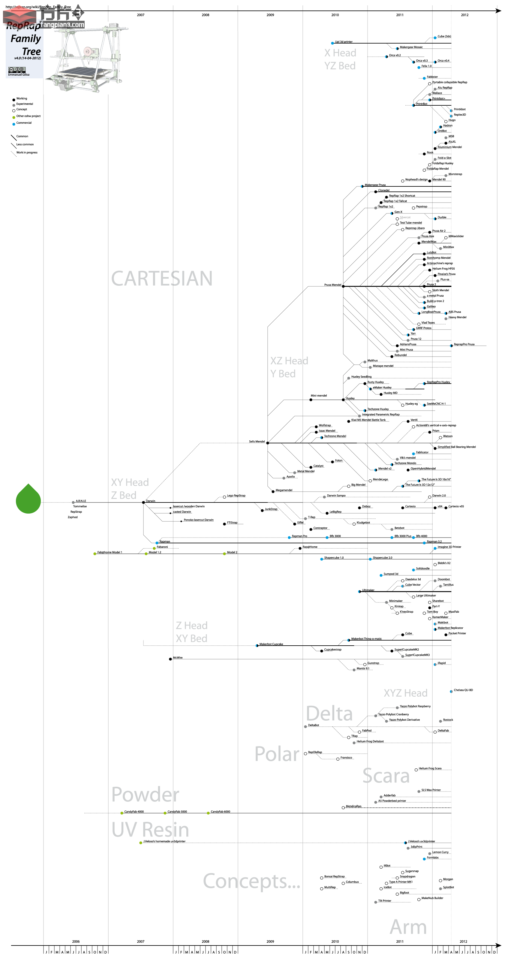 2012年4月15日RepRap官網(wǎng)公布的新版RepRap家譜