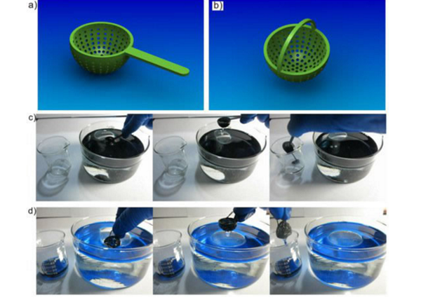 “一個關(guān)鍵的創(chuàng)新是利用靈活的設(shè)計和制造3D打印以及隨后的水凝膠涂層處理,”研究人員總結(jié)說。帶有水凝膠涂層的球形撇油器制作簡單,能夠去除浮油??蓪?shí)現(xiàn)各種油水分離器,以滿足未來的需求,給個人生活帶來極大的便利??紤]到它的簡單性,這項工作可以為使用3D打印技術(shù)的新方法鋪平道路,在分離、水凝膠、電子、智能機(jī)器人等許多領(lǐng)域中具有更實(shí)際的應(yīng)用。