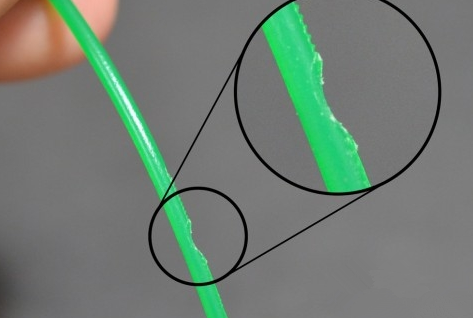 很多人描述這種情形的時候稱耗材被“刮掉了”,因為耗材被刮掉太多,擠出機無法正確工作。如果你的打印機也出現(xiàn)這種問題,你應(yīng)該能發(fā)現(xiàn)很多從耗材上磨下來的塑料碎屑。同時你也能觀察到,雖然擠出機馬達在轉(zhuǎn)動,耗材卻沒有被送入擠出機內(nèi)。下面我們會解釋這個問題的最簡單的解決辦法。