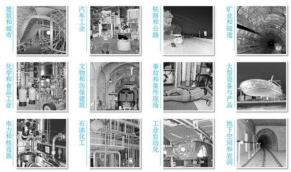 最長(zhǎng)掃描距離小于150 m的三維激光掃描儀屬于中距離三維激光掃描儀,其多用于大空間的測(cè)量,例如: 流程工業(yè)、能源行業(yè)、古建筑、考古、異型建筑、市政工程、地下空間等。