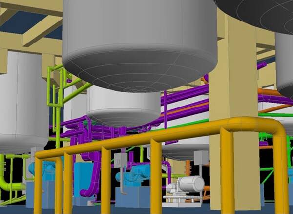 通過三維掃描儀的基礎(chǔ)掃描,可以搜集機(jī)構(gòu)或作業(yè)現(xiàn)場的完整三維信息,這些重要的基礎(chǔ)信息,為改建、設(shè)計(jì)、檢測提供真實(shí)、高精度的數(shù)據(jù)源。在軟件中將設(shè)計(jì)模型與三維場景進(jìn)行結(jié)合,以對設(shè)計(jì)進(jìn)行虛擬校驗(yàn)、干涉檢查,避免返工,提高效率,縮短工期,并節(jié)約成本。