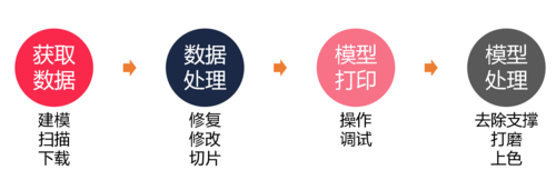 3D打印流程一般包括:數(shù)據(jù)獲取、數(shù)據(jù)處理、3d打印和后處理四個(gè)步驟。