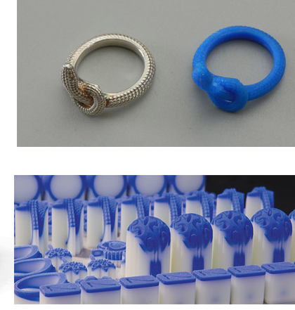 第七種技術(shù)叫“多頭噴射”(MJP),通常使用的材料為樹脂、蠟等。在打印過程中可以使用多種材料,在打印時(shí)噴頭噴射出成型材料和支撐材料,對(duì)于塑料和齒科設(shè)備種類,支撐材料是蠟,成型材料是紫外線固化的丙烯酸酯塑料。