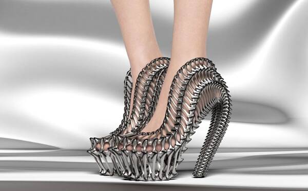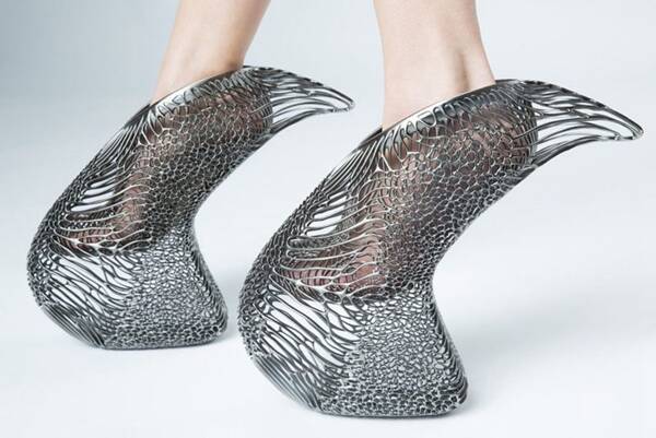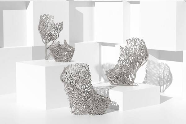 不久之前,Ica & Kostika推出了一整套Exobiology系列的鞋子。據(jù)魔猴網(wǎng)了解,Exobiology是一系列以各種大膽的鞋子為特色著稱,這些都是3D打印的,其設(shè)計靈感源自大自然,經(jīng)過精心設(shè)計和構(gòu)造,以適應(yīng)腳的自然形狀。此系列有四款,分別是Seahorse海馬鞋、Spine脊柱鞋、Coral珊瑚鞋、 Mycelium菌絲鞋。高跟鞋的制作方式采用尼龍12材料進(jìn)行打印,再進(jìn)行汽車級電鍍,最后完成了輕便、耐用的高跟鞋。這系列鞋子只接受個人化定制,消費者需下載應(yīng)用程式并掃描或拍攝他們的腳,然后創(chuàng)建3D模型圖,最后完成3D打印。