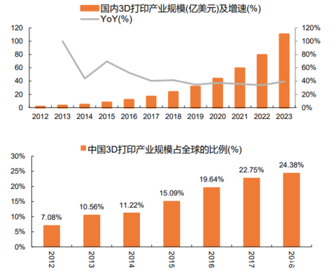 在我國(guó)產(chǎn)業(yè)升級(jí)的背景下,3D打印技術(shù)得到國(guó)家層面的重視,尤其是2017年12月工信部等12部門(mén)印發(fā)的《增材制造產(chǎn)業(yè)發(fā)展行動(dòng)計(jì)劃(2017-2020年)》,為我國(guó)的3D打印行業(yè)提出了年均增速30%以上,2020年增材制造產(chǎn)業(yè)銷(xiāo)售收入超過(guò)200億元等目標(biāo)。