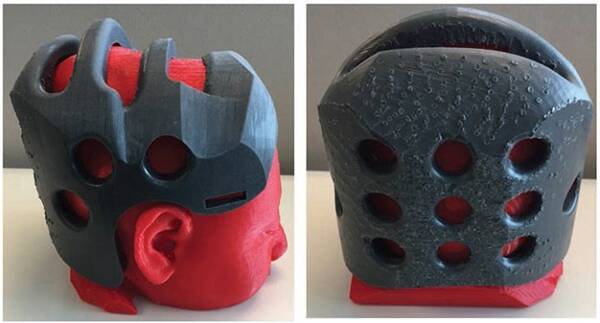 最終的柔性光敏聚合物樹(shù)脂頭盔可適應(yīng)患者的解剖學(xué)頭部形狀。