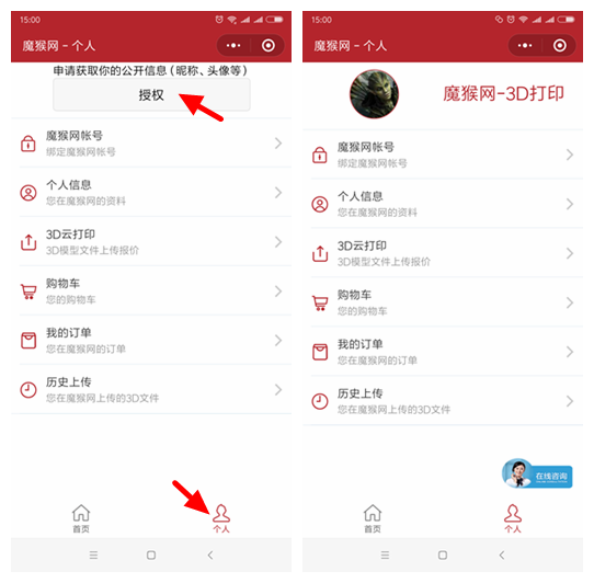 “魔猴網3D打印平臺”微信小程序如何注冊和綁定賬號?