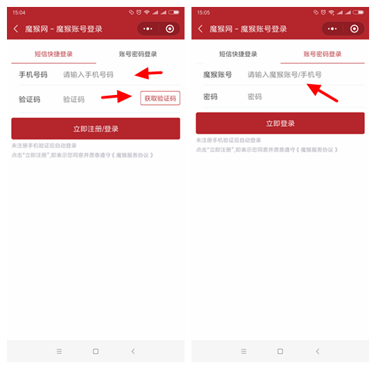 3、注冊新賬號和綁定已有魔猴網平臺賬號