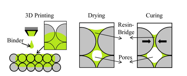 顆粒粘合劑粘結(jié)和樹脂的示意圖