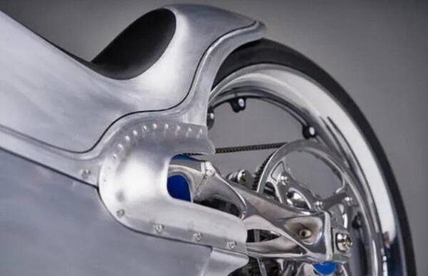 這款電動(dòng)摩托車具有透明的聚碳酸酯纖維輪轂,與眾不同的是以輪轂為中心的轉(zhuǎn)向系統(tǒng)(而不是傳統(tǒng)的前叉設(shè)置),封閉式雕刻鋁制車身以及3D打印部件。安裝在輪轂上的獨(dú)特轉(zhuǎn)向板是用鈦合金3D打印而成的,前穩(wěn)定臂外側(cè)的前穩(wěn)定器臂也是如此。