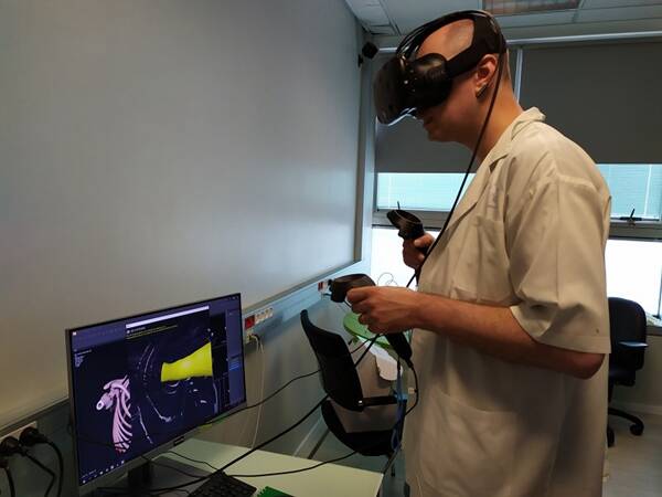虛擬現(xiàn)實模擬器上的麻醉師。攝影:Ruth Shaylor博士。
