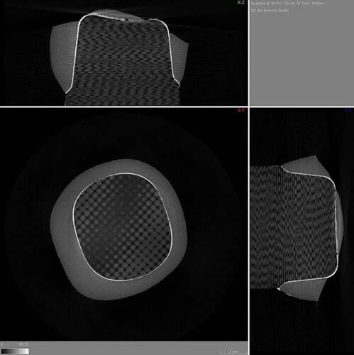 μCT圖像:冠邊緣區(qū)域沒有沖洗掉粘合劑。來源:Bego