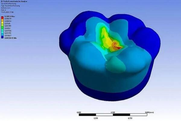 可視化有限元分析:分析冠緣區(qū)域中很小的變形載荷。來源:Bego