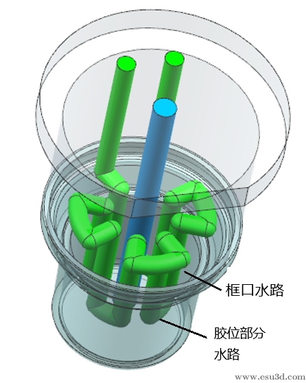 · 后模鑲件水路深入至產(chǎn)品膠位部分。