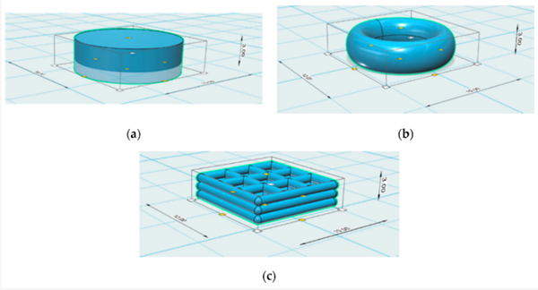 設(shè)計不同的3D幾何形狀:(a)圓柱,(b)圓環(huán)和(c)網(wǎng)格線。