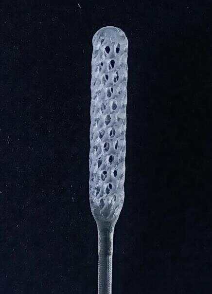 3D打印拭子的頭部,用于采集病毒樣本。來(lái)源:Structo