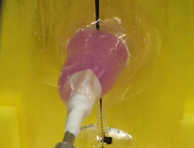Wan與Rochester大學(xué)的Hing Jii Mea和羅切斯特大學(xué)的Luis Delgadillo共同創(chuàng)建了一種裝置,該裝置可以將由聚乙二醇二丙烯酸酯(PEGDA)組成的水性溶液的液滴封裝在常見的有機硅中,基有機聚合物聚二甲基硅氧烷(PDMS)。該設(shè)備使用多相滴注系統(tǒng)產(chǎn)生小的PEGDA液滴。在這種情況下,PDMS在滴頭周圍流動,而PEGDA液滴被均勻地引入到有機硅基聚合物中。這樣,兩種材料將一起流到3D打印的任何結(jié)構(gòu)上。