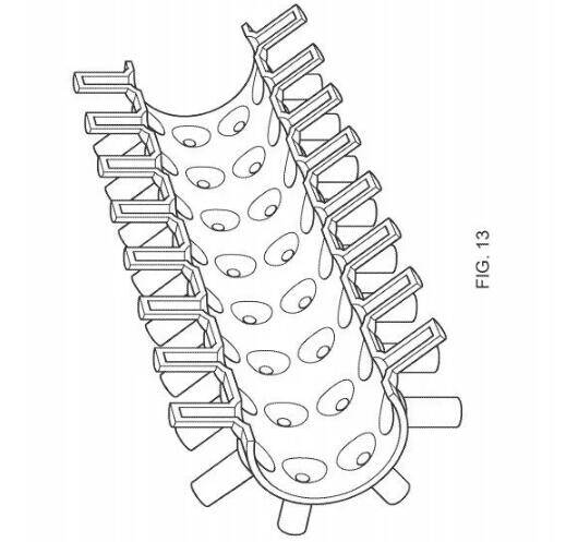 針翅式換熱器專利,增加主管和針翅式熱管之間的過渡區(qū)域的體積。來源:USTPO