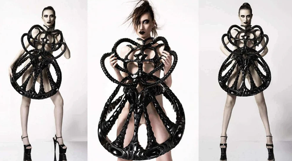 Vortex連衣裙是另一件很棒的連衣裙,著重強調(diào)了使用3D打印來制作極其不規(guī)則的形狀。 Vortex連衣裙由Laura Thapthimkuna設(shè)計,他的靈感來自外太空和類似生物形態(tài)的漏斗狀結(jié)構(gòu)。
