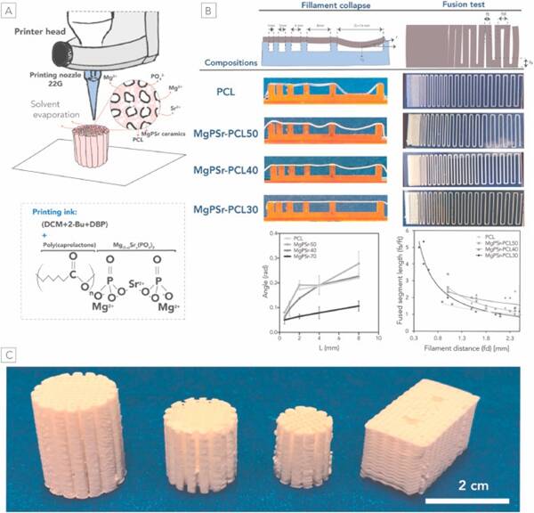 通常使用各種不同的傳統(tǒng)技術(shù),使研究人員仍然要處理諸如下層結(jié)構(gòu),與機(jī)械性能有關(guān)的收縮以及為10mm以上缺陷創(chuàng)建支架的挑戰(zhàn)等障礙。在這項(xiàng)研究中,研究人員轉(zhuǎn)向使用陶瓷進(jìn)行基于擠壓的3D打印,同時(shí)探索了以前使用生物陶瓷與羥基磷灰石和聚己內(nèi)酯或聚(乳酸-共-乙醇酸)進(jìn)行3D打印的工作。