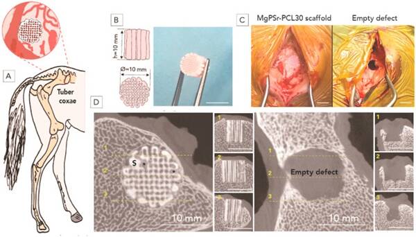 國際研究人員繼續(xù)克服骨再生技術(shù)的挑戰(zhàn),并在最近發(fā)表的“基于韌磷酸鎂的3D打印植入物在馬缺陷模型中誘導(dǎo)骨再生”中分享了他們的研究結(jié)果。當(dāng)醫(yī)生承擔(dān)重建人體骨骼的任務(wù)時(shí),通常需要一種不僅可以模仿人體組織而且可以生物降解的材料,使其適合與植入物一起使用。這種材料必須具有適當(dāng)?shù)臋C(jī)械性能,在許多情況下會(huì)帶來進(jìn)一步的困難。