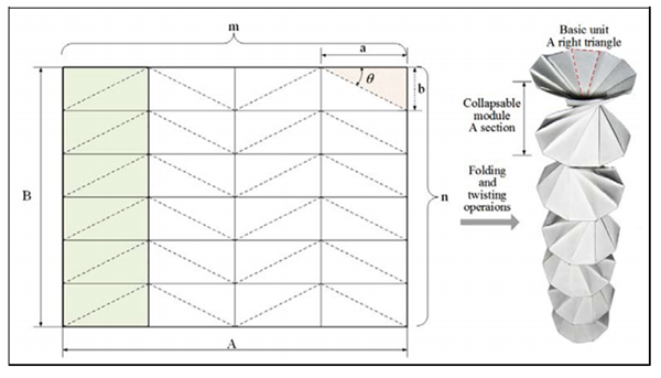 可折疊彈簧的靈感來(lái)自一個(gè)折疊并扭曲成均勻直角三角形的紙矩形。