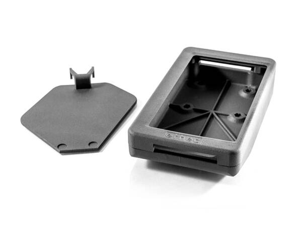 3D打印的顯示屏外殼(右)和加油口蓋(左)。圖片來自蘇黎世聯(lián)邦理工學(xué)院。
