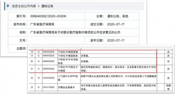 今年7月,廣東省醫(yī)療保障局在發(fā)布的《廣東省醫(yī)療保障局關于部分醫(yī)療服務價格項目公開征求意見》公示項目中,個體化3D模型重建、個體化3D模型制備、個體化3D手術導板制備、個體化3D可視化手術模型四項醫(yī)療3D打印的費用被納入市場調(diào)節(jié)價醫(yī)療服務價格項目,未來或納入醫(yī)保系統(tǒng),為患者帶來更多福音。