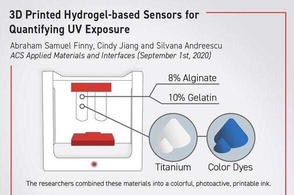 該論文的作者之一西爾瓦娜·安德列斯庫(kù)(Silvana Andreescu)表示:“由于3D打印機(jī)已經(jīng)變得便宜且易于使用,我們決定探索生物3D打印制造這些可穿戴的紫外線響應(yīng)傳感器的能力。當(dāng)[傳感器的]鈦被太陽(yáng)光等紫外線激活時(shí),染料會(huì)降解并改變顏色,表明已暴露。”
