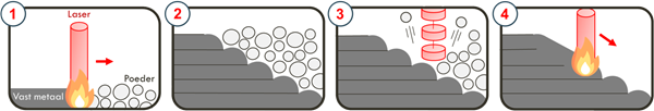 Vanmunster當(dāng)時(shí)是魯汶大學(xué)機(jī)械工程,制造過程和系統(tǒng)系的碩士研究生,他與同事們共同努力,并考慮將脈沖激光的沖擊波用作改善表面質(zhì)量的一種手段。通過將3D Systems ProX DMP 320A500W激光器配合使用,并使用第二納秒級的fiber光纖激光器,他們開發(fā)了一種雙重激光方法,可在打印過程中自動執(zhí)行表面精加工。當(dāng)?shù)谝粋€(gè)能量源用于打印零件時(shí),第二個(gè)脈沖激光通過向該區(qū)域發(fā)送微小的沖擊波來去除殘留的粉末。這會導(dǎo)致未燒結(jié)的粉末在一次激光重新熔化外表面之前被吹走。