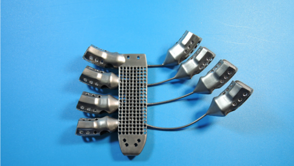 一組由非晶態(tài)金屬制成的3D打印半徑板植入物。圖片來自賀利氏。