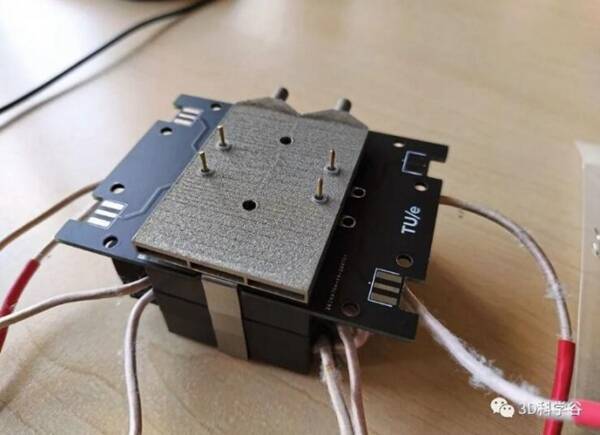 除了使用主動(dòng)散熱元件外,被動(dòng)元件最近也成為亞琛的關(guān)注焦點(diǎn)。在這里,例如對(duì)于大電流線圈,對(duì)冷卻的需求也在增加。通過3D打印可以提供合適的解決方案,例如厚度為0.8毫米的薄壁,使得總有用于冷卻插件的空間。