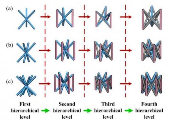 /Design of the second, third, fourth hierarchical level lattice cells with (a) three-, (b) four-, (C) six-fold rotational symmetries