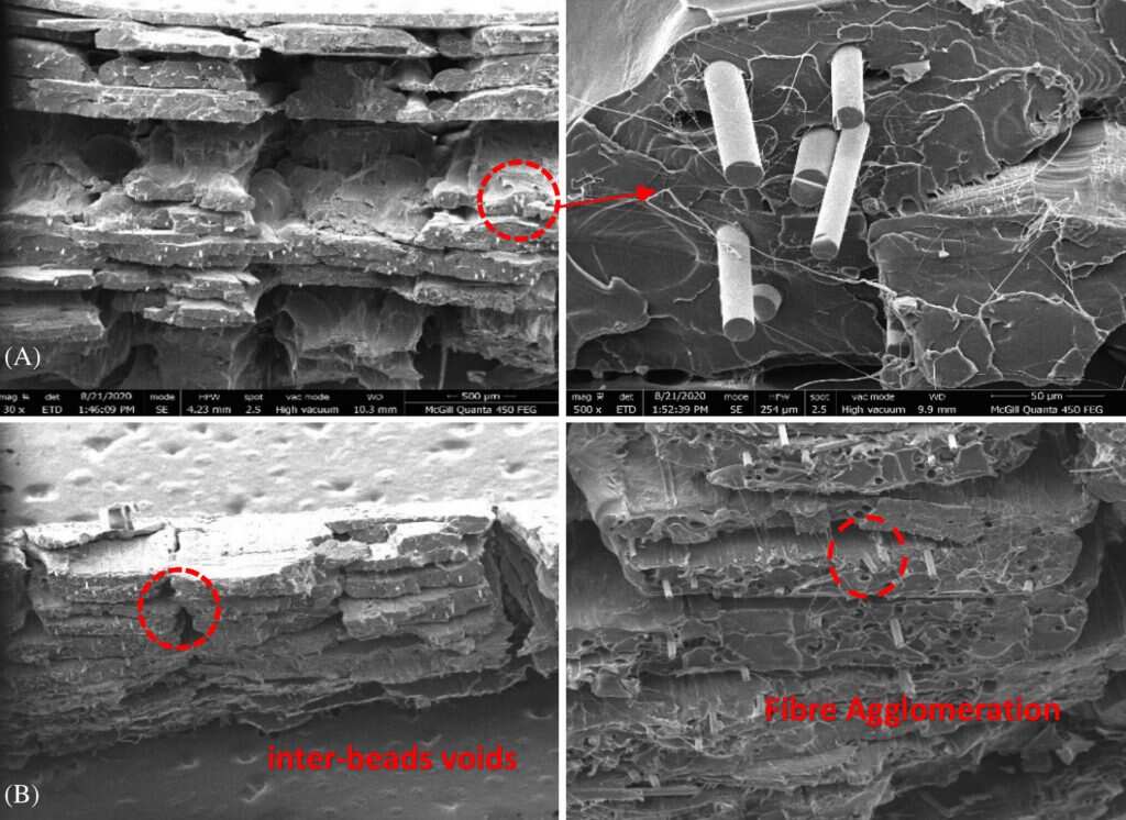 來(lái)自該團(tuán)隊(duì)熱解增強(qiáng)試樣斷裂表面的 SEM 圖像。圖片來(lái)自聚合物復(fù)合材料雜志。