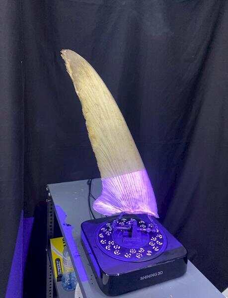 藍鯊鰭(胸鰭)是使用 3D 圖像軟件進行 3D 激光掃描的。照片來自 Markus Bürgener/TRAFFIC