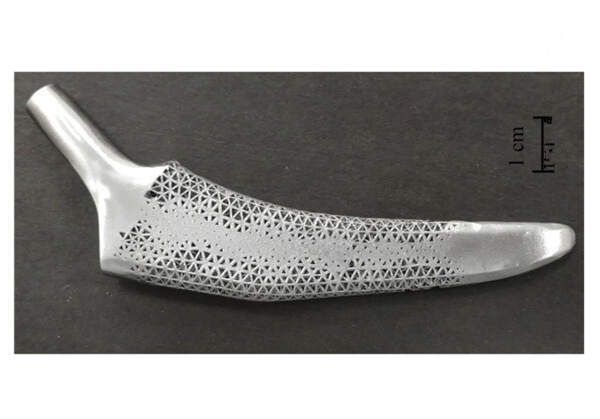 基于以上設(shè)計(jì)方法,通過3D打印技術(shù)實(shí)現(xiàn)了髖關(guān)節(jié)植入體優(yōu)化結(jié)構(gòu)的制造,如圖2所示。該植入體已經(jīng)應(yīng)用于在臨床手術(shù),其性能已經(jīng)通過骨吸收進(jìn)行了數(shù)值評(píng)估,骨吸收是一種描述應(yīng)力屏蔽導(dǎo)致骨丟失的優(yōu)點(diǎn)數(shù)字。術(shù)后條件的結(jié)果表明,優(yōu)化后的晶格種植體的骨丟失僅為完全固體鈦種植體的41.9%,證明了該植入體結(jié)構(gòu)的性能得到了明顯的提升。同時(shí),這一進(jìn)展也印證了結(jié)構(gòu)拓?fù)鋬?yōu)化和3D打印的結(jié)合具有很大的應(yīng)用前景。