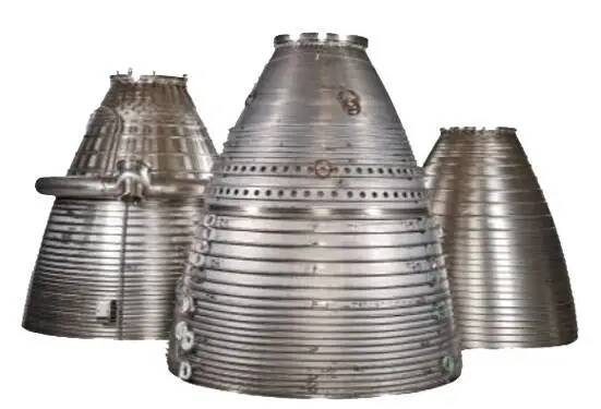 直徑為2.5米,噴管采用創(chuàng)新技術(shù)制造而成,性能更高,交貨時(shí)間更短,成本更低。通過激光焊接和激光能量沉積工藝對關(guān)鍵結(jié)構(gòu)零部件進(jìn)行加工,使得噴管的零部件數(shù)量減少了90%,從約1000個(gè)零部件減少到約100個(gè)零部件。并且降低了40%的成本,減少了30%的交貨時(shí)間。