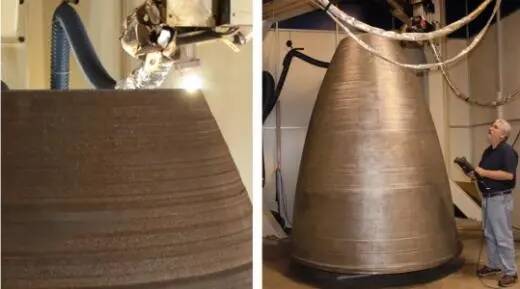 2021NASA還通過跟DM3D和奧本大學(xué)的合作,3D打印了大約2噸重的火箭噴管。大約 2 噸的增材制造全尺寸 RS25 噴管襯里的確切尺寸為 111 英寸高(281厘米高)和 96 英寸直徑(243厘米直徑)。龐大的零件是在幾個(gè)月的時(shí)間里制造出來的——與傳統(tǒng)的制造技術(shù)相比,加工時(shí)間減少了 50% 以上。
