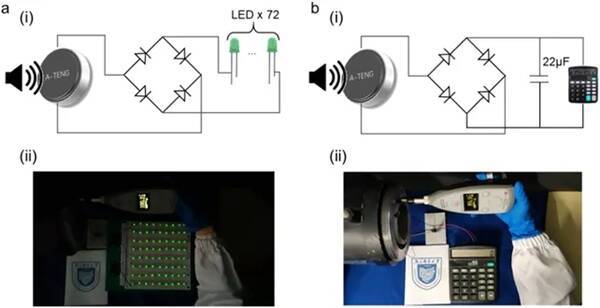 4A-TENG作為電子設備電源的應用:可驅動LED燈和商用計算器。