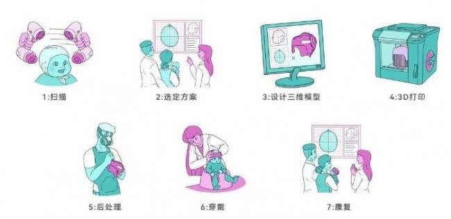 Polymaker的合作伙伴之一HeadStart Medical,是位于加拿大的一家健康工程公司,專注于治療嬰兒斜頭畸形和其他形式的顱骨變形。該公司臨床醫(yī)生會使用3D掃描儀對嬰兒的頭部進行快速描,用特有的3D成像系統(tǒng)來捕捉嬰兒頭部的結(jié)構(gòu)。隨后掃描數(shù)據(jù)將立即出現(xiàn)在屏幕上,臨床醫(yī)生和家人可以了解應該采取哪些措施進行治療。在確定治療方案后,工程師可在三維軟件中,創(chuàng)建定制的頭部矯正器的3D模型,并用3D打印機打印模型。待模型完成后,檢查無誤后即可裝上帶子和泡沫內(nèi)襯,完成質(zhì)量檢查后便可交付。治療過程完成后,嬰兒將完美地矯正成正常的頭型。