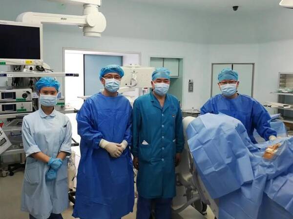 在陳杰等麻醉團隊的保駕護(hù)航下,周洪語團隊為患者實施了微創(chuàng)球囊手術(shù)。采用3D打印導(dǎo)板,一針穿刺到位,在X線透視下將球囊導(dǎo)管置入預(yù)定位置,注入造影劑壓迫三叉神經(jīng)半月節(jié)2分鐘。