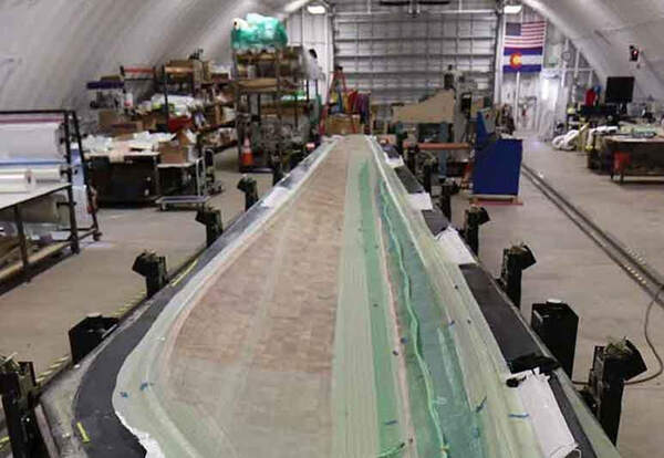 NREL 研究人員的 13 米熱塑性刀片原型的一部分。照片來自 NREL Ryan Beach。