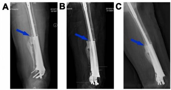 現(xiàn)行大段骨缺損治療的理念仍為借助自體、異體或人工骨移植填充的方式完成骨組織的替代與融合,即”骨-骨”界面融合,理論根深蒂固,而臨床療效欠佳。北京大學(xué)第三醫(yī)院等科研機構(gòu)的研究團隊,在一項研究工作中采用定制式3D打印鈦合金多孔內(nèi)植物進行大段骨缺損的修復(fù),實現(xiàn)了患者早期肢體功能恢復(fù)及遠期”內(nèi)植物-骨”界面的可靠融合,療效顯著提高。