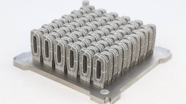 △使用電子束的粉末床熔融技術(shù)因打印速度快和高產(chǎn)量而受到推崇,這些外科植入物是使用GE Additive公司的Arcam 3D打印機(jī)打印的(來源:GE Additive公司