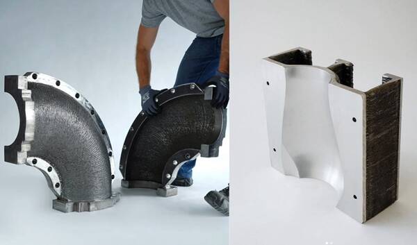 上面這個(gè)巨大的起重機(jī)吊鉤是用電弧增材制造(WAAM)打印的,然后進(jìn)行后期加工。像這樣一個(gè)巨大和沉重的零件非常適合使用WAAM,因?yàn)檫@項(xiàng)技術(shù)比任何傳統(tǒng)的金屬制造方法(如鍛造或鑄造)更快,而且同樣堅(jiān)固。此外,這種零件可以在離需求點(diǎn)較近的工廠中生產(chǎn),甚至可以在現(xiàn)場生產(chǎn),例如在石油鉆井平臺(tái)上。
