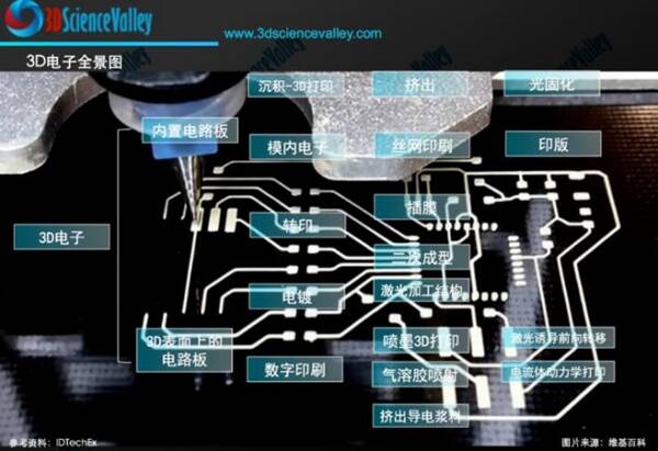 3D電子技術(shù)是一種新興的方法,將電子元器件集成于目標(biāo)對(duì)象表面或內(nèi)部。雖然長(zhǎng)期以來(lái)3D電子技術(shù)一直被用于在 3D 注塑物體表面添加天線和簡(jiǎn)單的導(dǎo)電互連,但越來(lái)越多的復(fù)雜電路通過(guò)利用新技術(shù)被添加到由各種材料制成的表面上。此外,根據(jù)IDTechEx 模內(nèi)電子設(shè)備和 3D 打印電子設(shè)備可以將完整的電路集成到一個(gè)物體內(nèi),從而提供多種優(yōu)勢(shì),包括簡(jiǎn)化制造和新穎的外形尺寸。