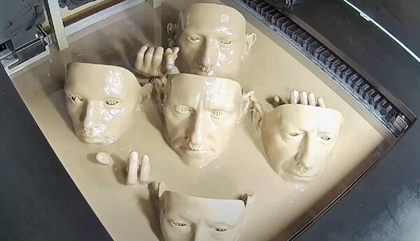 人形機器人的所有部件均使用大幅面 SLA 技術進行 3D 打印,表面處理極為逼真,表面還覆蓋了聚氨酯涂層,增強光聚合 3D 打印部件的耐用性。GLUCK 不斷提高SLA 系統(tǒng)的能力,應用了非常高分辨率的紋理來復制每個人形機器人臉上的皮膚毛孔。但是要想獲得完美逼真的膚色,需要大量的后期處理工作。20多臺超大型3D打印機組成的工廠,批量化生產人臉。