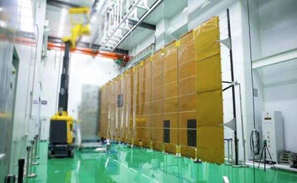 在方舟實(shí)驗(yàn)室,一面巨大金色“可推拉門”映入眼簾。讓人意想不到的是,這個長近10米,寬近3米的“可推拉門”,在“呼啦一下”折疊壓緊后,厚度竟然只有數(shù)十毫米。“這個‘可推拉門’是公司研發(fā)的新型柔性太陽翼,實(shí)際上是下一代衛(wèi)星的‘翅膀’?!编嵑舱f,太陽翼是衛(wèi)星能量的主要來源,傳統(tǒng)剛性太陽翼由于基板比較厚,導(dǎo)致整體“塊頭”比較大,因此傳統(tǒng)衛(wèi)星的“翅膀”一般比較短,裝載柔性太陽翼的衛(wèi)星將擁有超長的“翅膀”,為衛(wèi)星提供更大的能力。