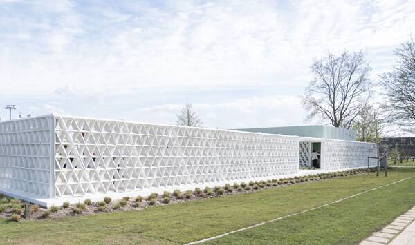 △展館由 3D 打印的 claustra 圍墻組成。圖片來自 Aactual