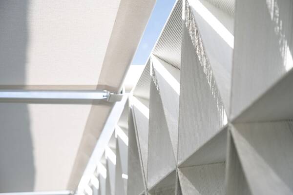 Aectual 開發(fā)了復(fù)雜的三角形3D打印塊,這些塊“像一個(gè)巨大的拼圖游戲”組合在一起,形成了一個(gè)半透明的墻,庭院和建筑物位于其中。該建筑本身覆蓋著 Aectual3D打印Weave面板,這些面板是綠色、輕質(zhì)且靈活的面板,采用植物基塑料 3D 打印,呈現(xiàn)出編織的外觀。 Pragma Aectual指出3D打印是一種相當(dāng)環(huán)保的技術(shù),所有面板都在迪拜設(shè)計(jì)并在阿姆斯特丹本地制造。因此,建筑產(chǎn)品的運(yùn)輸大大減少,Aectual 3D 打印技術(shù)意味著在制造過程中實(shí)現(xiàn)了零浪費(fèi)。